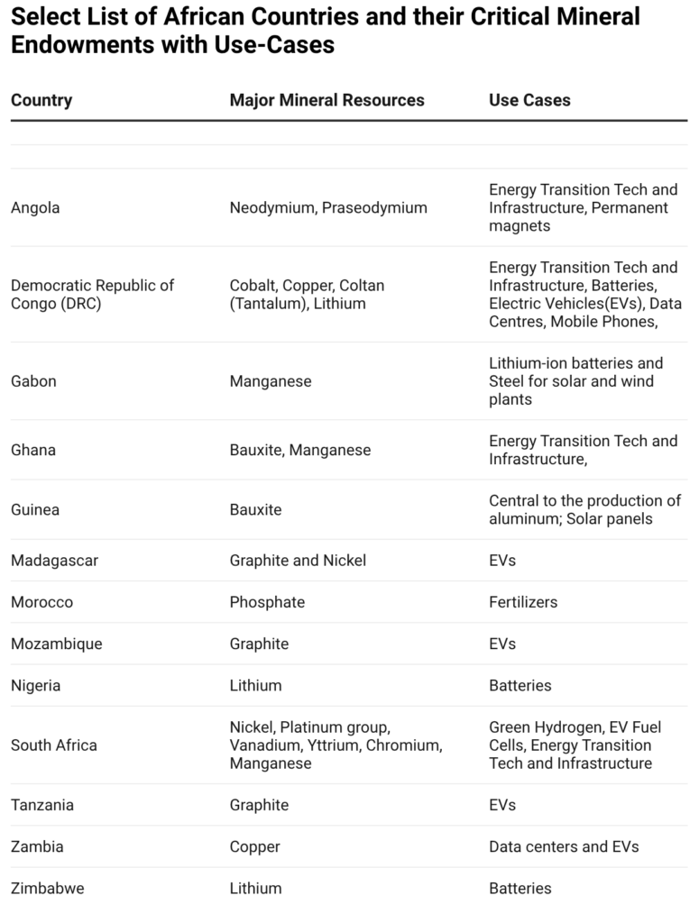Figure 2: Select List of African Countries and their Critical Mineral Endowments