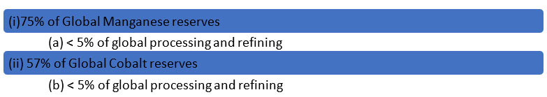 Figure 3: Africa’s mineral reserves vs. processing share (selected minerals)