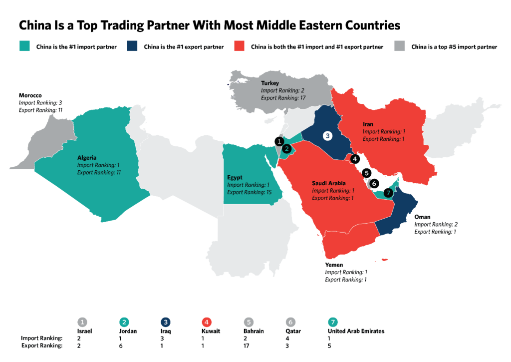 The rest of this brief explores China’s interests in the region: the economic basis for its partnerships; Beijing’s approach to issues of regional security; and the implications for the Chinese Communist Party’s legitimacy worldwide and how the MENA region plays into its larger aim of establishing a new world order.
