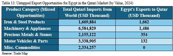 | Qatar | 10% (Edible Vegetables) | 9% (Edible Fruits) | 6% (Cocoa Preps) | 5% (Furniture & Bedding) |